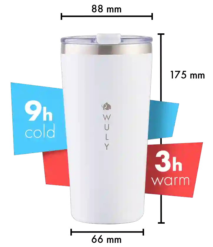 Wuly je pro tebe ten pravý. Není příliš velký a ani příliš malý. Tento termohrnek má tu správnou velikost. Díky mírně zkoseným stranám ti pohodlně padne do ruky nebo do držáku na nápoje v autě. Jeho vodotěsné víčko udrží tvůj nápoj uvnitř a všechno ostatní venku. Co ještě? No ano, vypadá super.