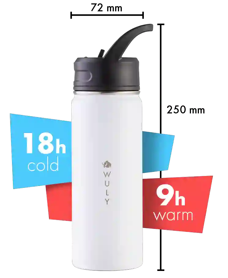 Rádi se hydratujete, ale voda, kterou si berete s sebou, není příliš osvěžující? Sportovní lahve jsou skvělé na sport, ale na nic jiného. Po nějaké době bude mít vaše voda stejnou teplotu jako její okolí, což bude pravděpodobně příliš teplé nebo příliš studené, ale málokdy osvěžující. Láhev Wuly udrží váš nápoj v ideální teplotě bez ohledu na to, zda jste na hřišti, na pláži, při jízdě autem nebo v kanceláři. Její čistá elegance se nebude vyjímat, ať už se ji rozhodnete vzít kamkoli. Nemáte zájem o vodu, žádný problém. Konstrukce z nerezové oceli se skvěle hodí pro jakýkoli druh nápoje, jako jsou sycené nápoje, džusy, čaj, káva nebo dokonce polévka či zmrzlina. Rádi si dáváte studený nápoj v automatu? Vezměte si ji s sebou z domova a ušetřete pár mincí. Za několik týdnů se vám láhev vrátí.
